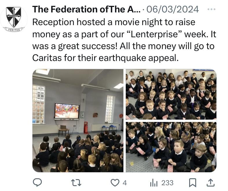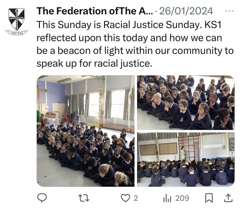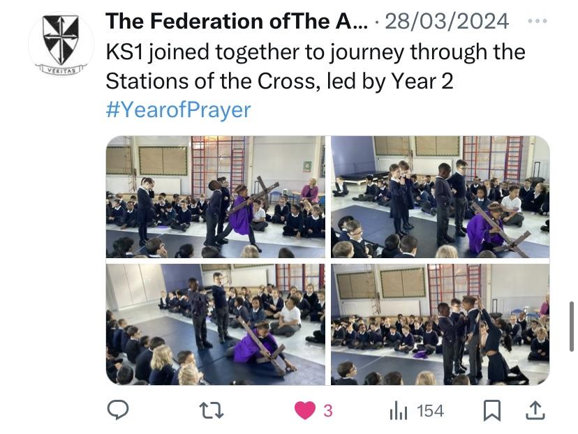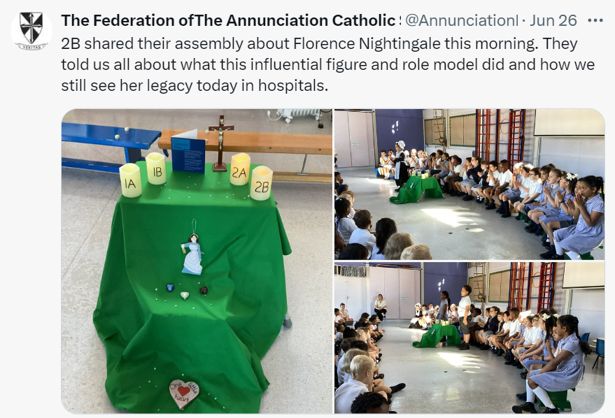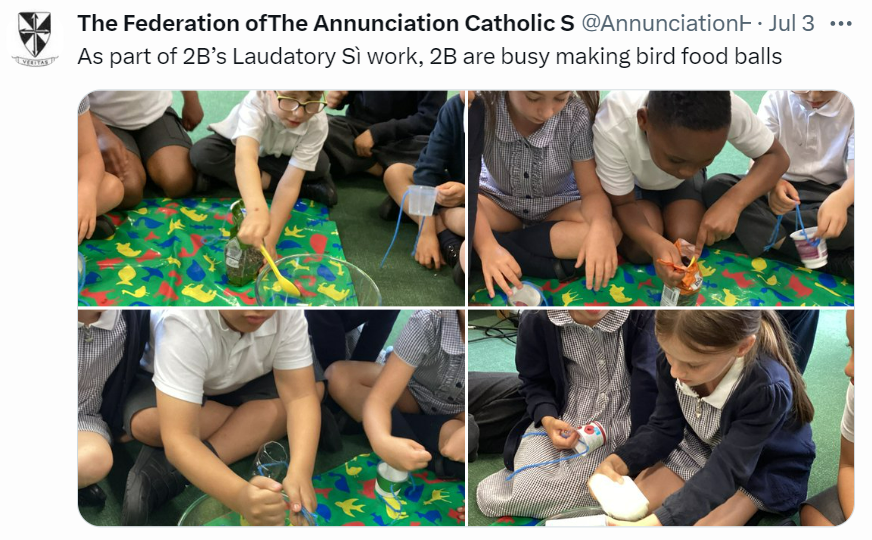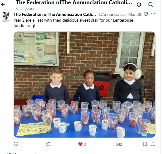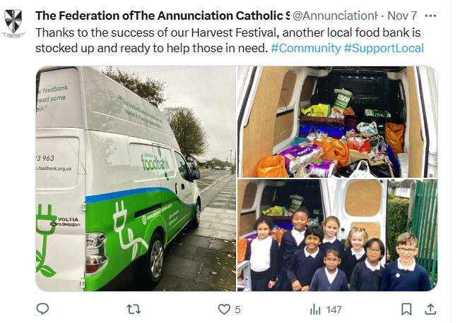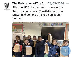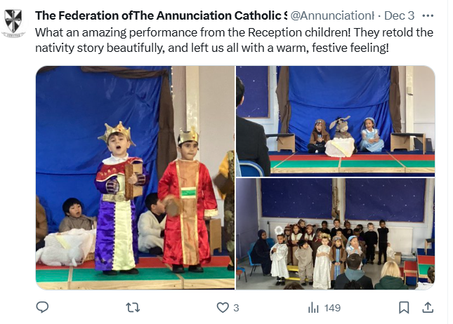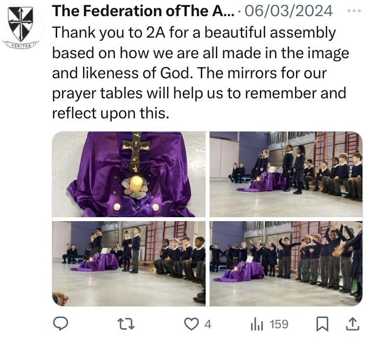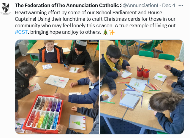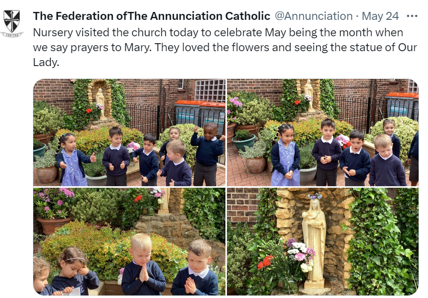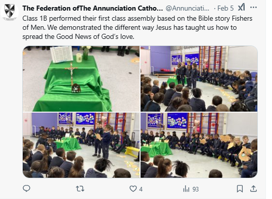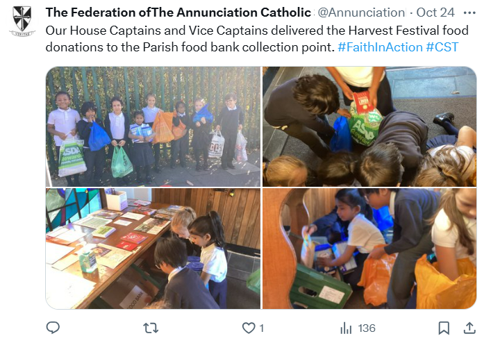 At The Federation of The Annunciation Catholic Schools, our school mission statement is the foundation of the Catholic Life and lived mission of the school. We endeavour to instil in our pupils that our faith calls us to love God and to love our neighbours in every situation, especially our sisters and brothers living in poverty or other challenging situations. Following in the footsteps of Christ, we hope to make present in our unjust and broken world, the justice, love and peace of God. It is by doing so that we truly become who God meant us to be and in turn spread the flame of his love through the world.