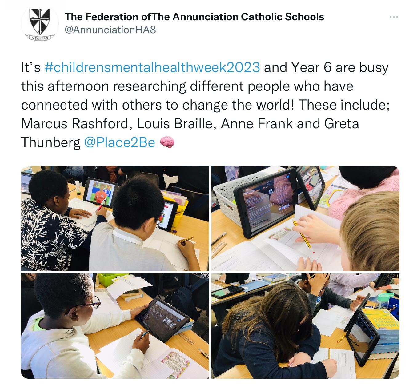 •    We also take part in annual events such as Children’s Mental Health Week, Anti-Bullying Week and Internet Safety Day (In addition to the online safety lessons taught as part of RSHE).