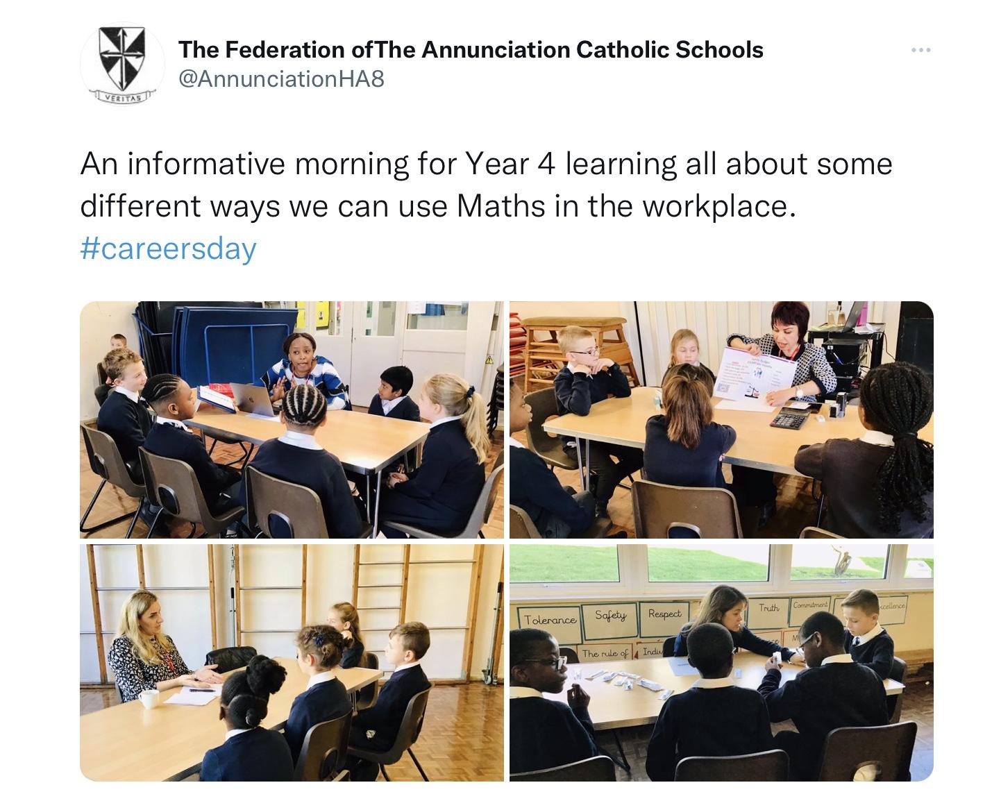 •    We want to prepare children for later life and encourage this through Money Week in which we have a Careers day whereby parents explain to the children how they use subjects such as Maths through their rich and diverse job roles.