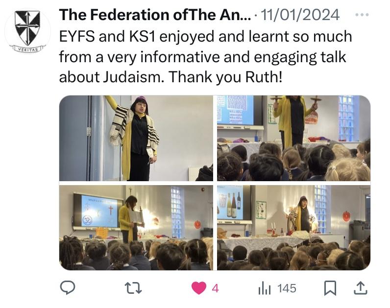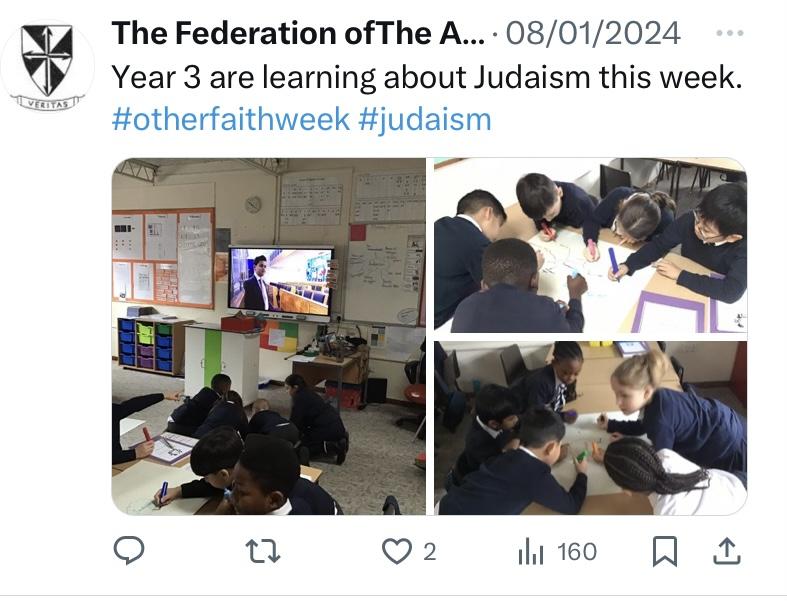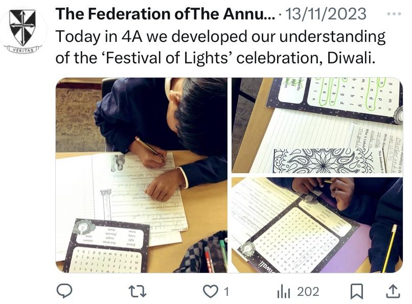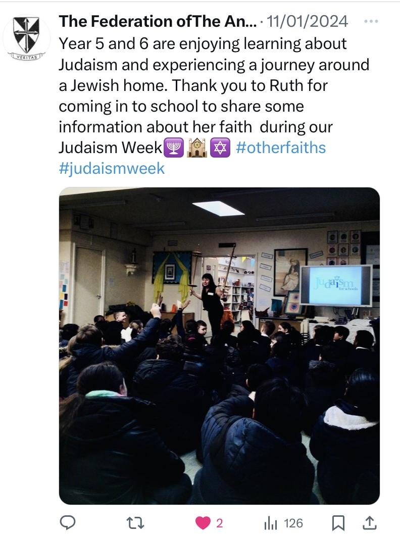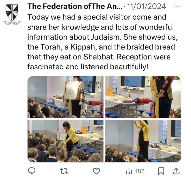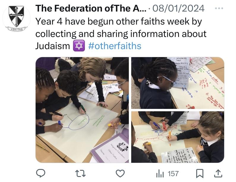 Children are encouraged to explore learning of other faiths and traditions through lessons, outside speakers and visits to places of worship.