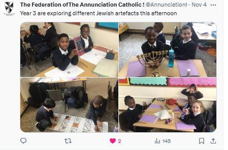 We aim to prepare the children in our school for life in modern Britain, creating global citizens, and giving them an understanding of the beliefs of others with the view to improving social cohesion and contributing to the common good by increasing mutual respect between those of different religions.
